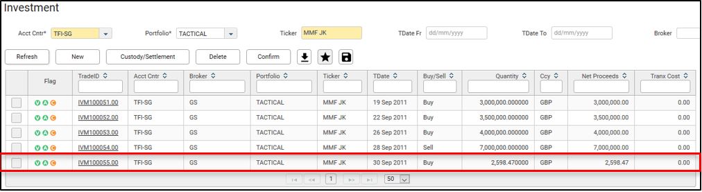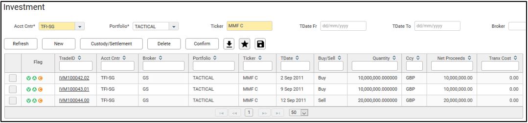 This allows to capture MMF investment trades in the system.