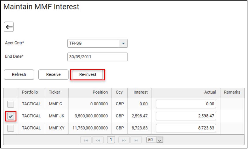 26. To re-invest MMF interest, click Maintain.