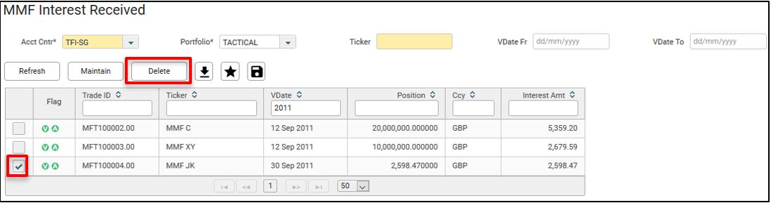 32. To delete the MMF interest trade in MMF Interest screen, tick on the check box and click Delete.