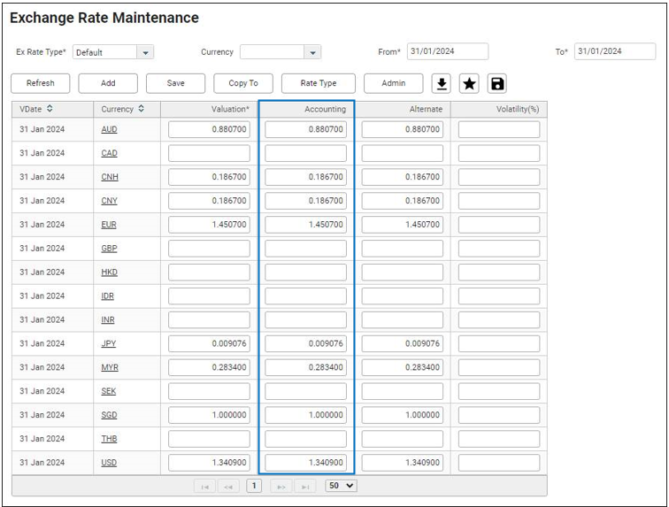 FAQ01: If a company is using the previous month’s month-end accounting rate (e.g., 31-Dec-2023) for transactions occurring in the current month (e.g., 1-Jan-2024 to 31-Jan-2024) and utilizes a different month-end rate for revaluing money market loan/deposit during month-end closing, how can the month-end accounting rate be updated to ensure accurate revaluation of Money Market Loan/Deposit and other financial instruments such as Foreign Exchange at month end?