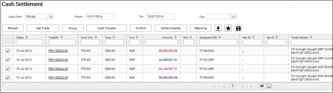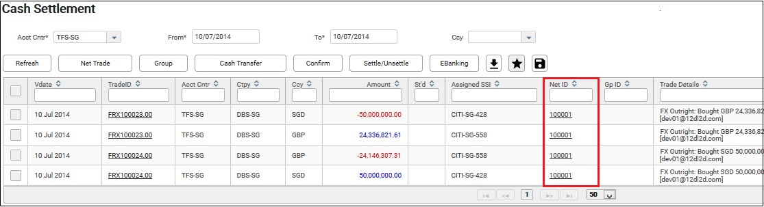 1. For example, you have the following two trades that are done with the same counterparty, i.e. DBS-SG bank and value on the same day, i.e. 10-Jul-2014.