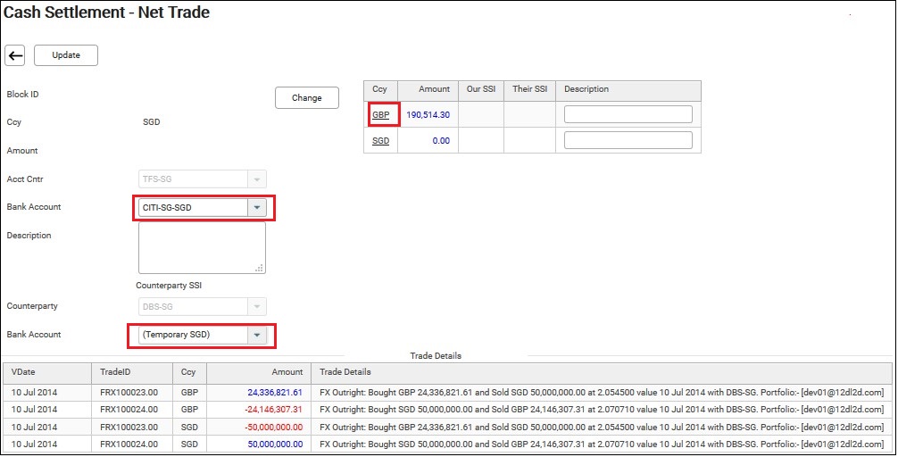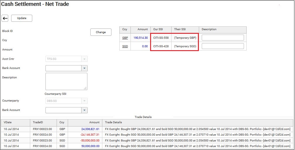 7. Click Update once you have completed all the settlement instructions. Netted trades will be assigned with a net ID as shown below.