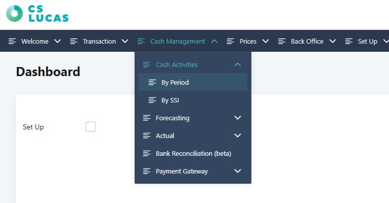 1. From the welcome screen, select Cash Management > Cash Activities > By Period.