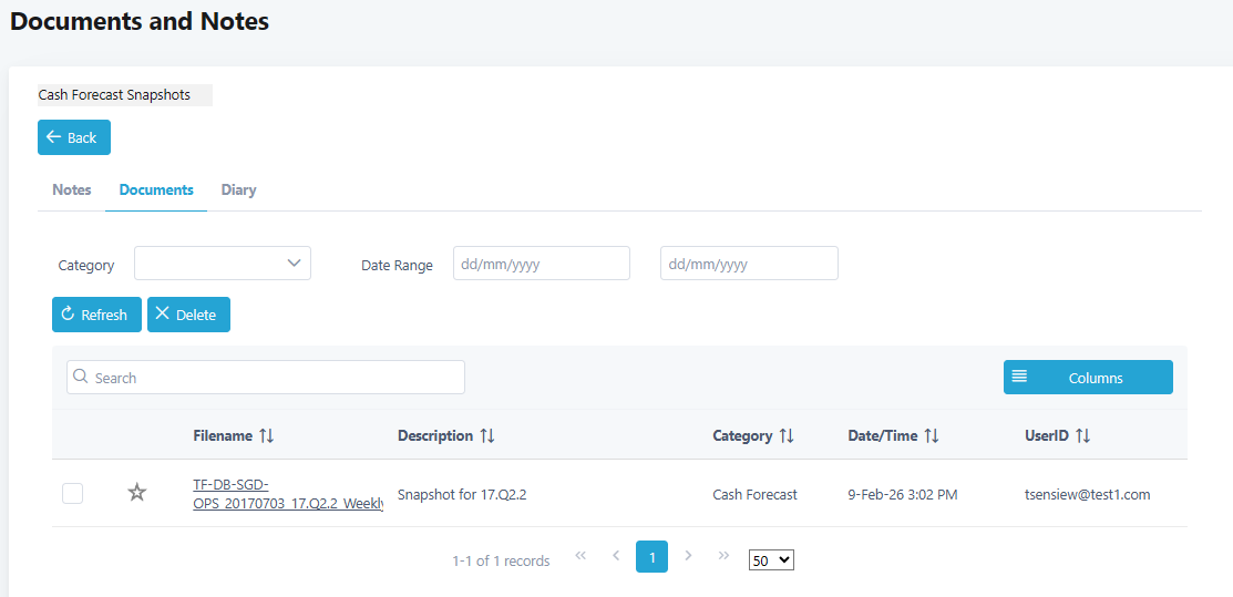 Note: To access Document and Notes, you will need to have access rights 12317 Access File Storage.