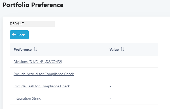 1. To navigate to Portfolio Preference, click Set Up > Risk > Portfolio. The Portfolio screen displays.