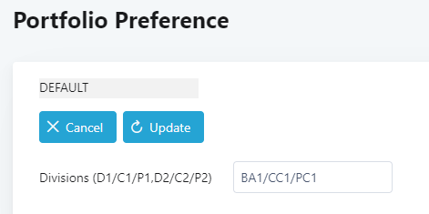 This set up allows tagging of accounting centre division (Business Areas/Cost Centres/Profit Centres) to portfolio which allows system to tag the accounting centre division to the month end journals of the investment portfolio trades for integration to external accounting system.