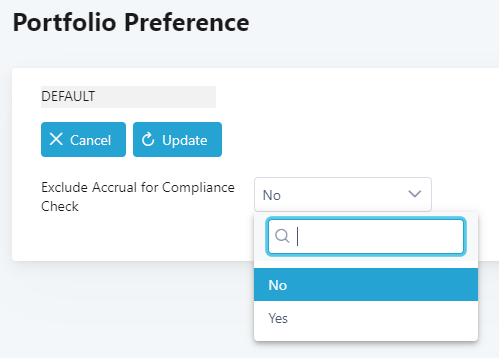 This set up allows the system to exclude accruals for Money Market and Investment trades in the compliance check.