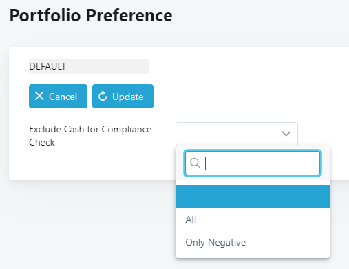 To exclude all cash/ negative cash, click on the Exclude Cash for Compliance Check hyperlink.