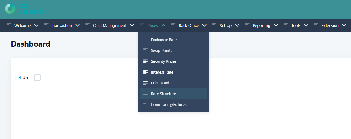This document shows the procedures for administration of rate structures in CS Lucas system.