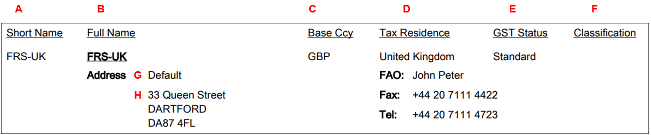 3. The report shows the accounting centre details and the address set up for each accounting centre.