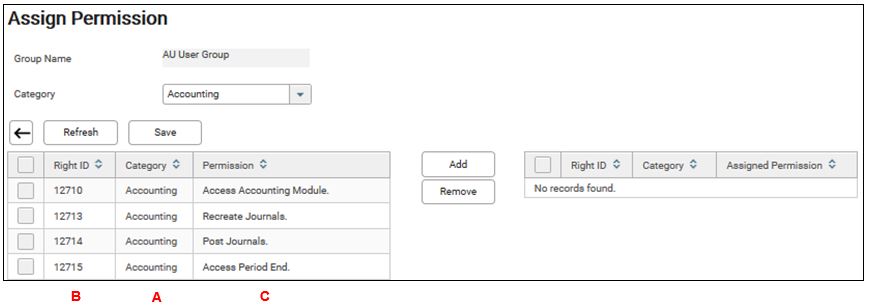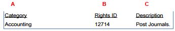 4. The report shows the Category, Rights ID and description.