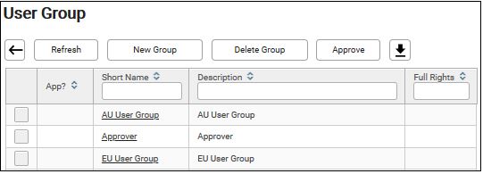 3. Click on any of the short name (Example: AU User Group).