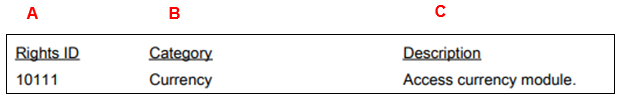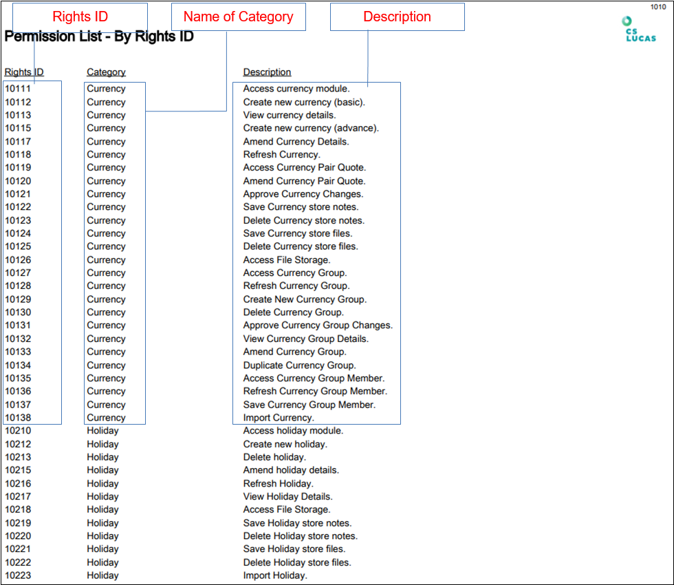To provide the Rights ID, Category and Description used by CS Lucas.