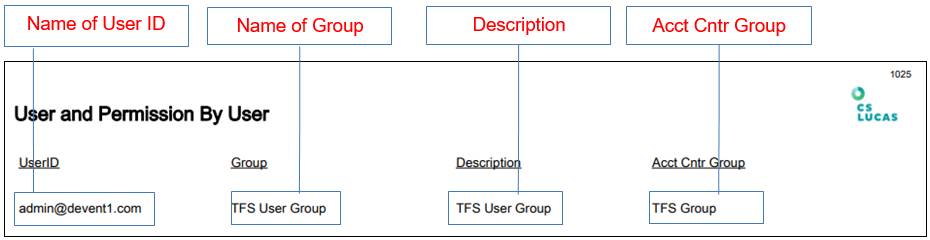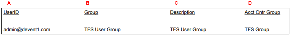 3. The report shows the User ID, User Group, User Group Description and Accounting Centre Group.