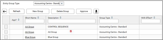 3. Select Entity Group Type: Accounting Centre – Standard.