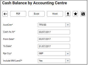 2. Fill in the mandatory parameter – Acct Cntr, Cash As At, From Date, To Date, Rpt Ccy and Include MM?