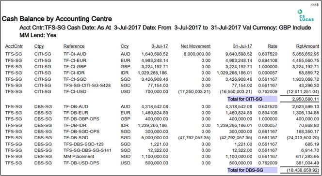 Report 1415: Cash Balance by Accounting Centre (W5)