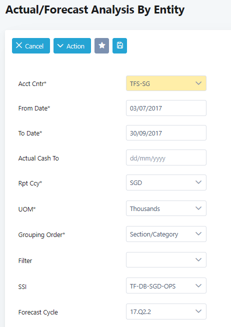 Allow users to verify the details of Actual/Forecast Analysis By Entity.