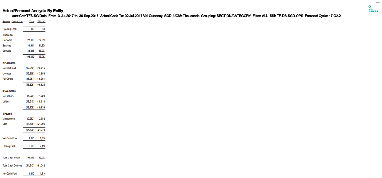 1. Navigate to Reporting > Standards > Report 1427: Actual/Forecast Analysis By Entity.