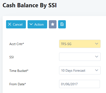 2. Fill in the mandatory parameter – Acct Cntr, Time Bucket and As At Date.