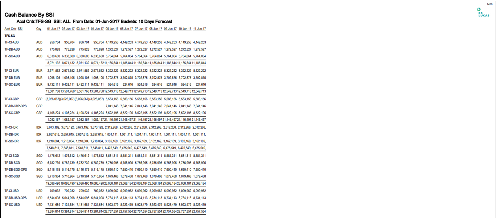 Report 1429: Cash Balance By SSI