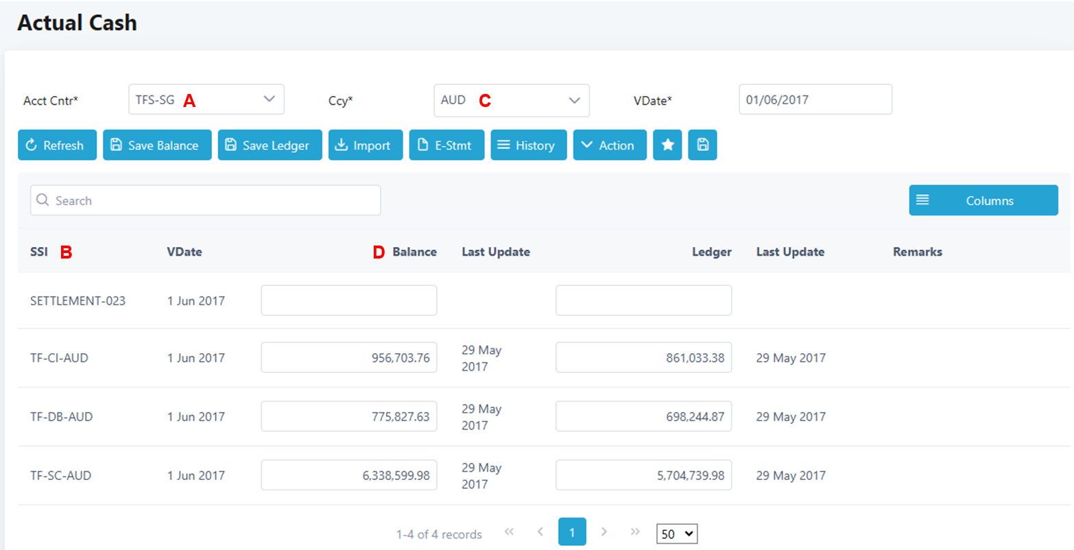 1. Navigate to Cash Management > Actual > Cash Balance.