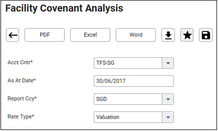 2. Fill in the mandatory parameter – Acct Cntr, As At Date, Reporting Ccy and Rate Type.