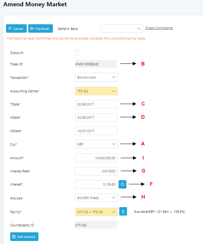 5. Click on the Trade ID (From example: MMK100008.00) to drill down to the Amend Money Market screen.