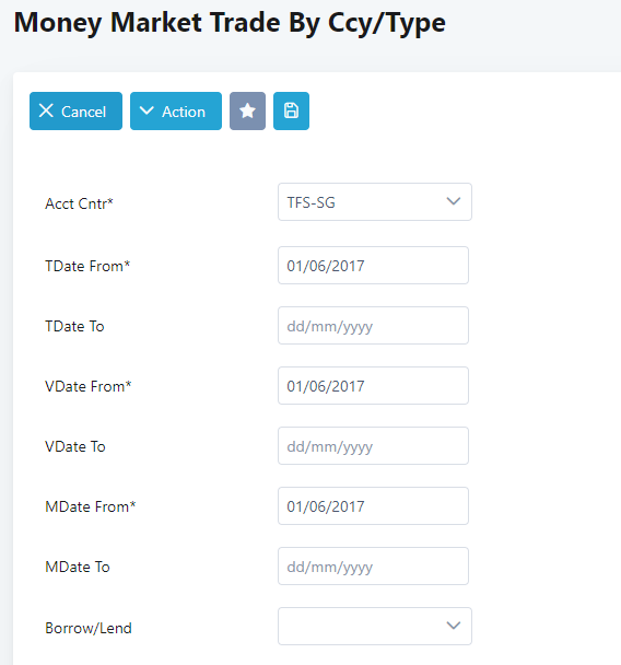 2. Acct Cntr, TDate From, VDate From and MDate From are mandatory parameters, the rest are optional parameters.