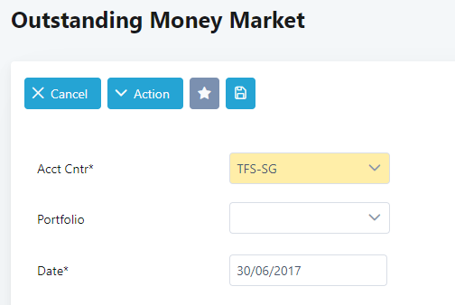 2. Acct Cntr and Date is a mandatory parameter. Portfolio is an optional parameter.