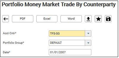 1. Navigate to Reporting > Standard > Report 2010: Portfolio Money Market Trade By Counterparty.
