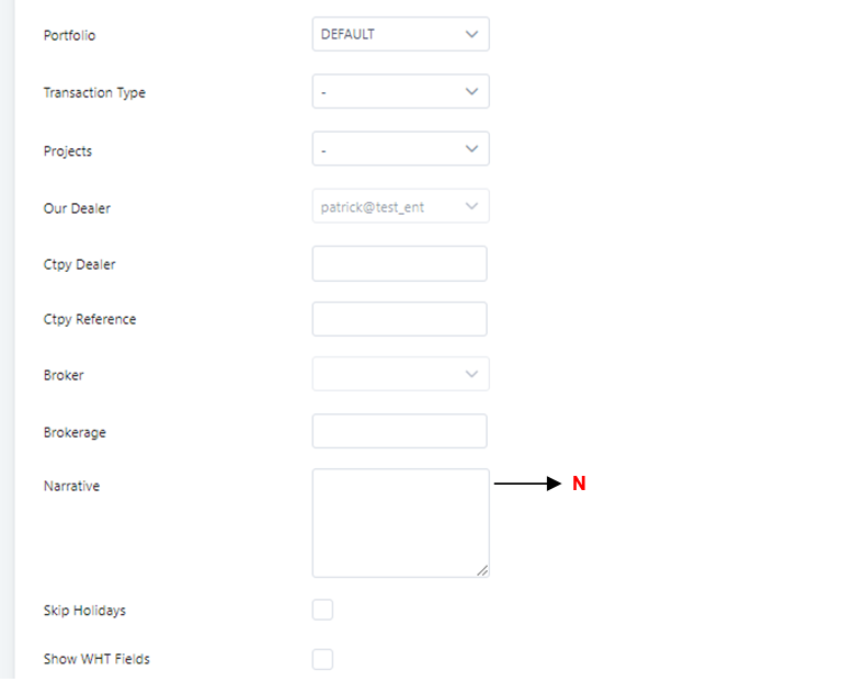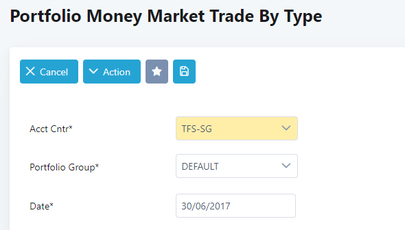 2. Select Accounting Centre, Portfolio Group and key in the Date.