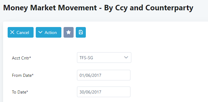 Allow users to verify the details of Money Market Movement – By Ccy and Counterparty.