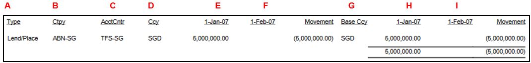 4. The report shows the Type, CounterpartyID, Accounting Centre, Currency, Trade Ccy Balance, Movement, Base Currency Balance and Movement.