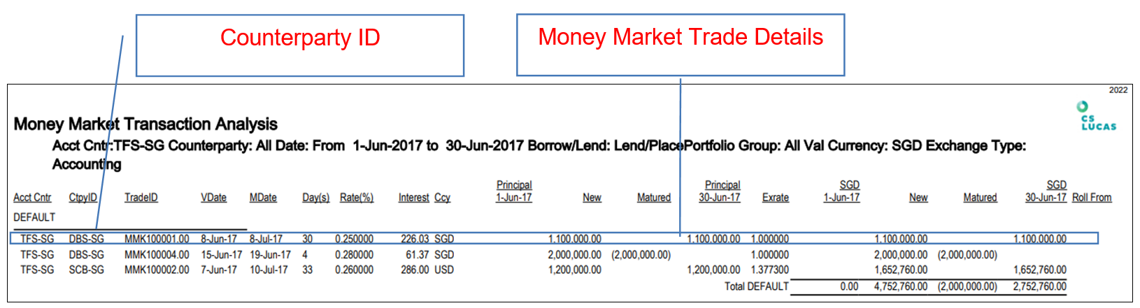 To provide the details used by CS Lucas to show Money Market Movement sort by Counterparty ID and Currency.