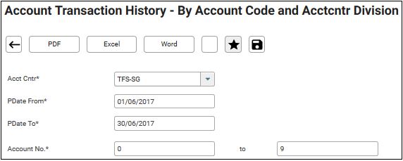 Allow users to verify the details of Account Transaction History – By Account Code and Acctcntr Division.