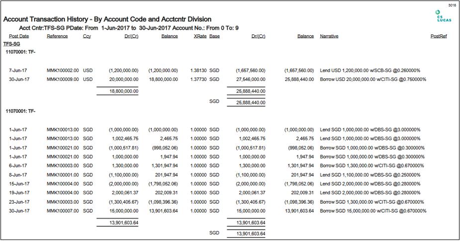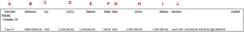 4. The report shows the Post Date, Reference, Currency Dr/Cr, Balance and XRate, Base Currency Dr/Cr, Balance, Narrative and PostRef.
