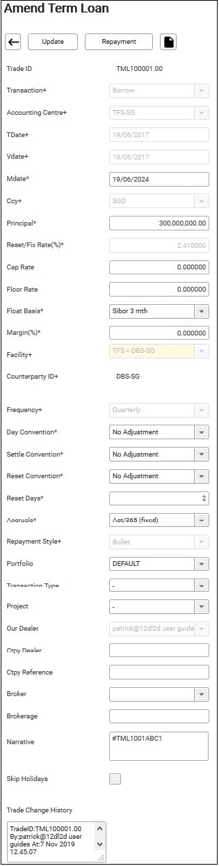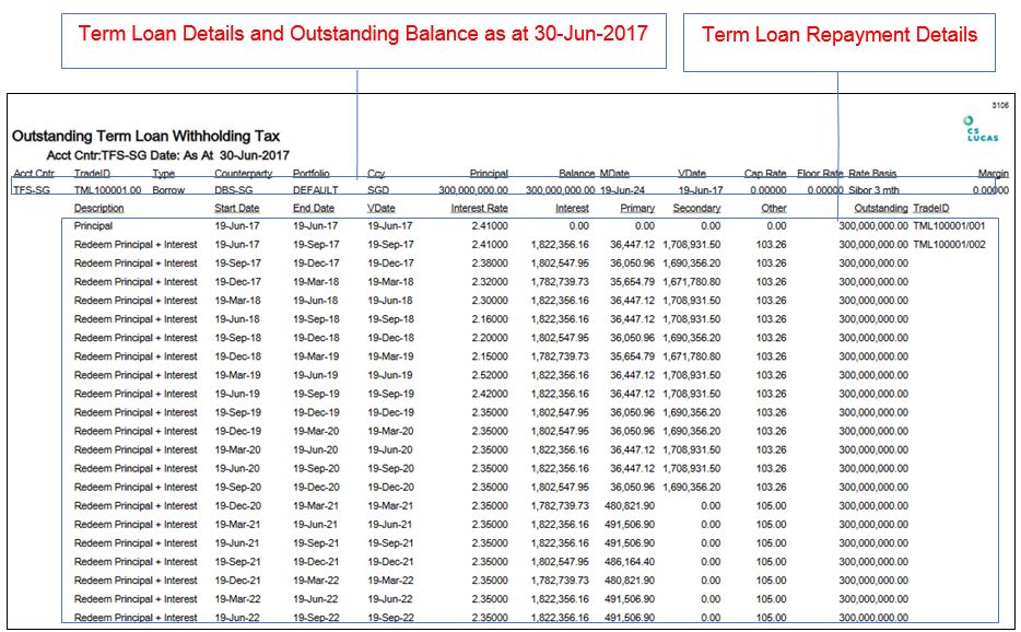 3. In Amend Term Loan Repayment Page, look for the date before 30-Jun-2017. Which is 19-Jun-2017, outstanding amount is 300,000.00.