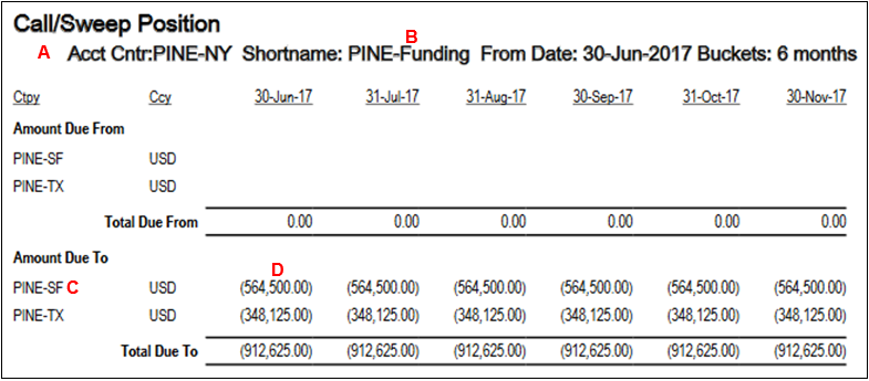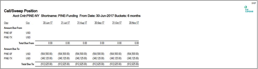 4. The report shows Counterparty, Currency and Call/Sweep position by different time buckets.