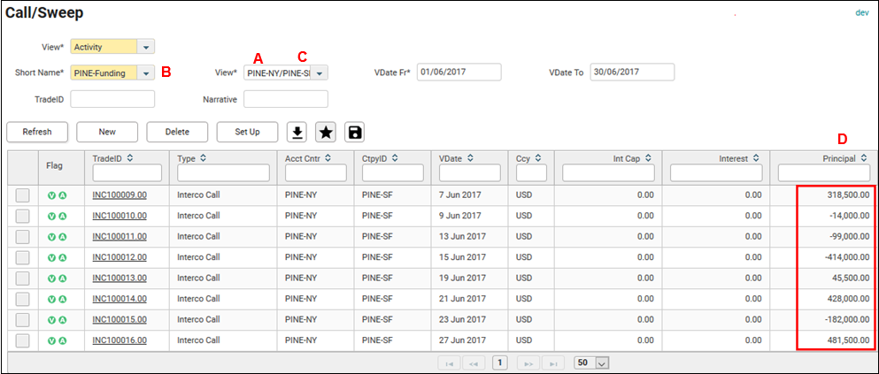 2. Fill in the mandatory parameter – Acct Cntr, Call/Sweep Shortname, From Date, Time Bucket.