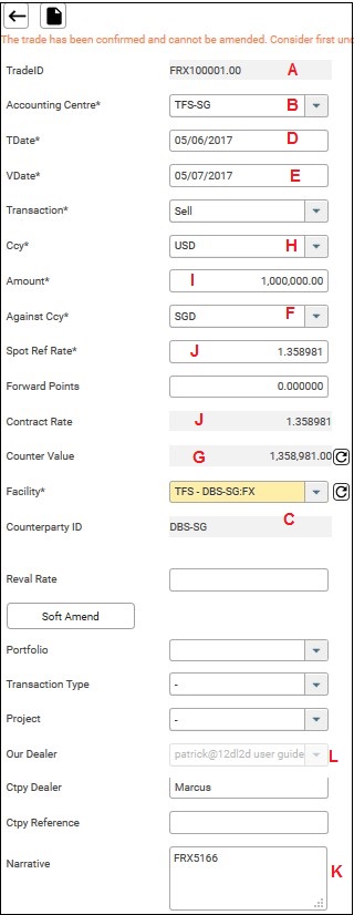 4. Select Trade ID FRX100001.