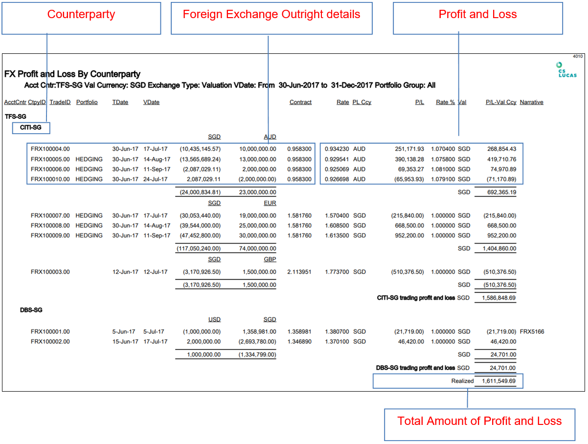 To provide the details used by CS Lucas to show the FX Profit and Loss By Counterparty.