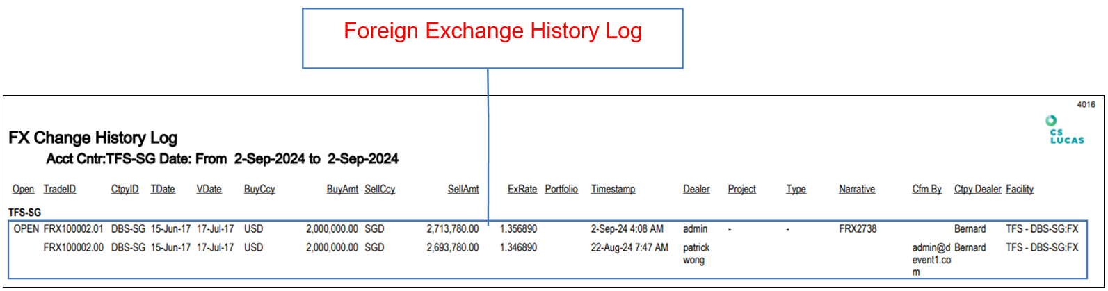 Report 4016: FX Change History Log