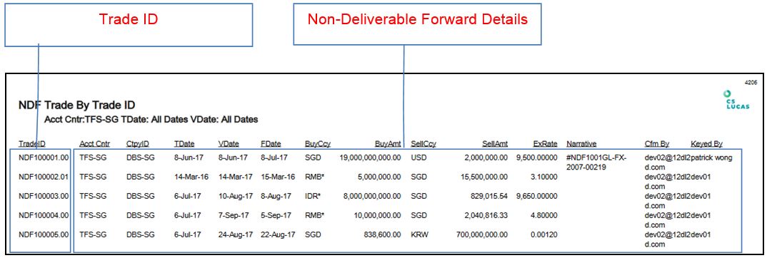 To provide the details used by CS Lucas to show the Non-deliverable Forward Trade By Trade ID.