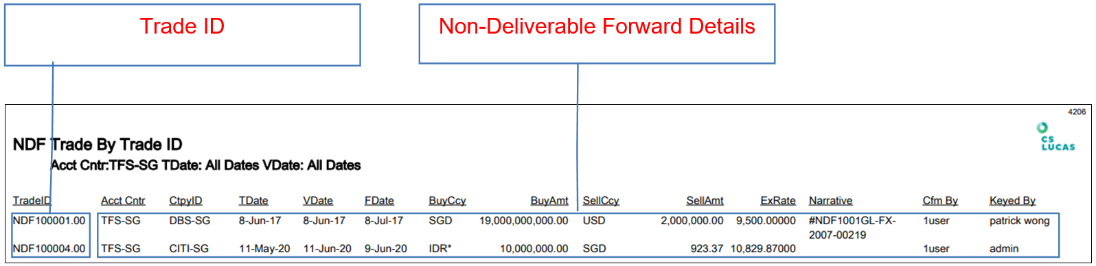 To provide the details used by CS Lucas to show the Non-deliverable Forward Trade By Trade ID.