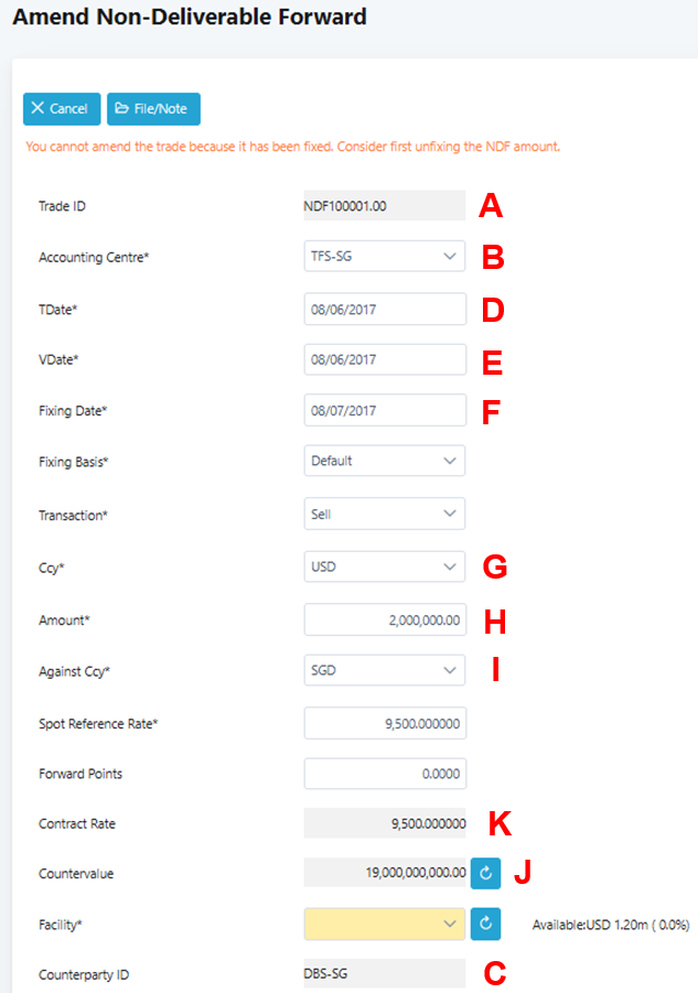 4. Click the Edit button next to the Trade ID: NDF100001.00.