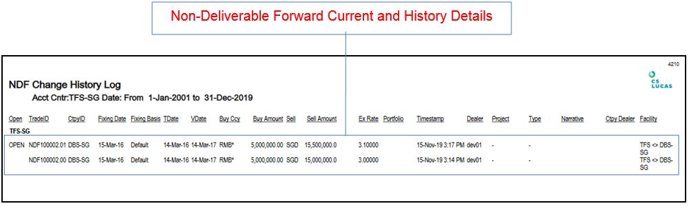 To provide the details used by CS Lucas to show the History Log for Non-deliverable Forward Trade.