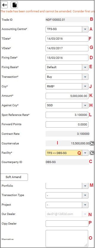 4. Select Trade ID NDF100002.01