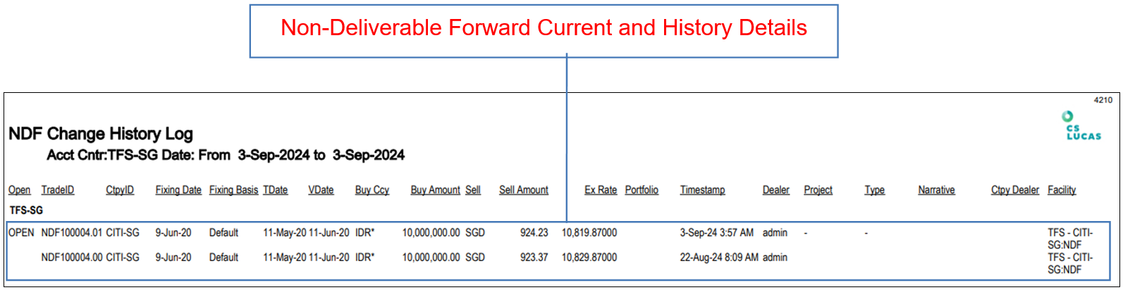 To provide the details used by CS Lucas to show the History Log for Non-deliverable Forward Trade.