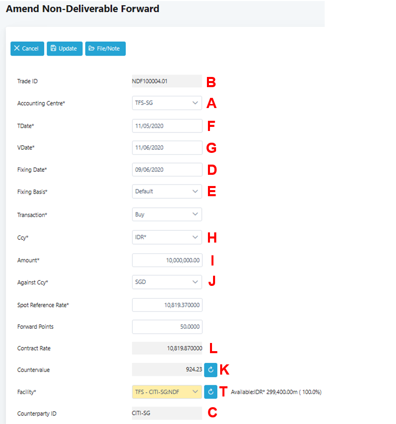 4. Click the Edit button next to the Trade ID: NDF100004.00.